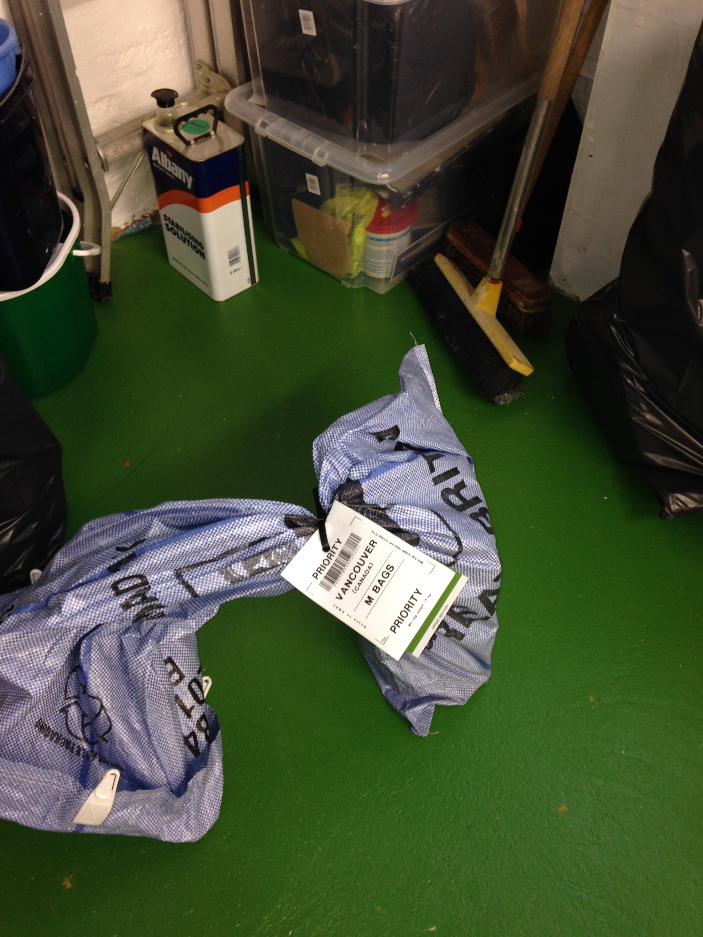 In the meantime, here are a couple of further photos – our first parcel going out from Tolworth, and the dog trying to get in on the action!