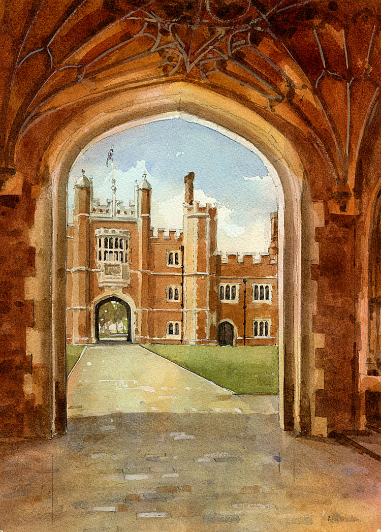 Hence we felt that it would be good to offer something you could look at all day every day, to better commemorate this very special publication. We have therefore commissioned an original watercolour painting by a well-known artist, local to this area but represented by a London gallery, to capture something of the history and heritage of Hampton Court. Each Bible will come with a limited edition art print, signed by the artist, one copy of which will be included with each Bible. (This art print will be limited to the same number of prints as the Bible, and will never be available elsewhere.)