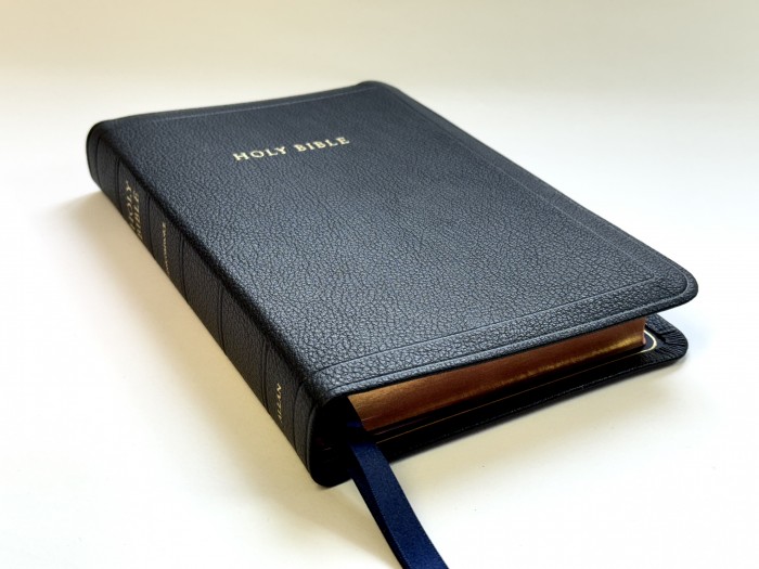 Our popular KJV Longprimer Thinline Bible in a new natural grain goatskin edition for 2025, lined with Meriva calfskin.