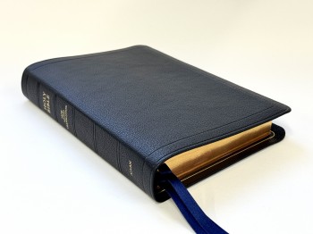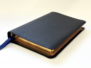 Bound in highest quality natural grain goatskin, this new edition is lined in Meriva natural grain calfskin with a generous semi yapp, gilt line round the inside of the case, art gilt page edges and three 10mm ribbon markers. It includes Allan's 8 page Presentation Page and Family Record, Concordance, full colour maps and 32 pages of lined writing paper.