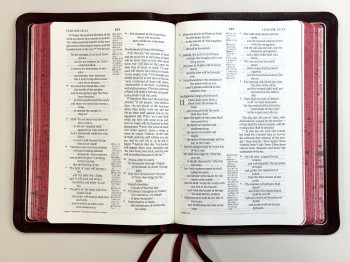 Bound in the UK using the finest quality natural grain Burgundy Dark Red Highland Goatskin and leather-lined in toning burgundy red with a generous semi-yapp, and with vintage-style speckled page edges, the Allan ESV New Classic Readers edition offers a beautiful presentation of the ESV translation that will give years of enjoyment for personal reading and study.
