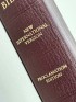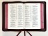 This edition of the Allan NIV Proclamation Bible is bound in Burgundy dark red Highland goatskin with full yapp, leather lined in toning burgundy red with double gilt lines inside and three claret red ribbon markers.  It features antiquarian-style hand-speckled page edges with red underlay and blue, gold and pearlescent speckles and includes presentation pages and family record in Allan's exclusive design, along with a concordance, 4pp colour maps and 32pp Allan lined notepaper.