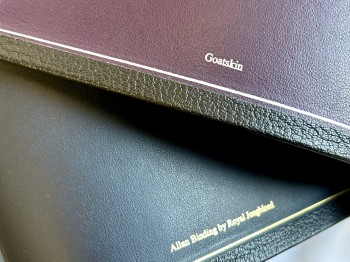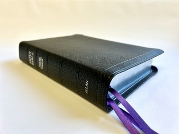 This edition is bound in the Netherlands by Royal Jongbloed in black natural grain goatskin, leather-lined in purple Meriva Calfskin with three purple ribbons. It comes complete with short book introductions, Allan Presentation pages, 32 pages of Crossway’s full colour maps and illustrations and 32 pages of lined notepaper.