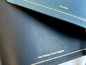 - Bound in high quality natural grain petrol blue goatskin and leather-lined in petrol blue Meriva Calfskin
